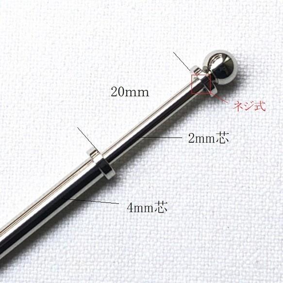 先端がネジ式になっており20mmサイズのとんぼ玉などを通すことができるかんざし金具です。